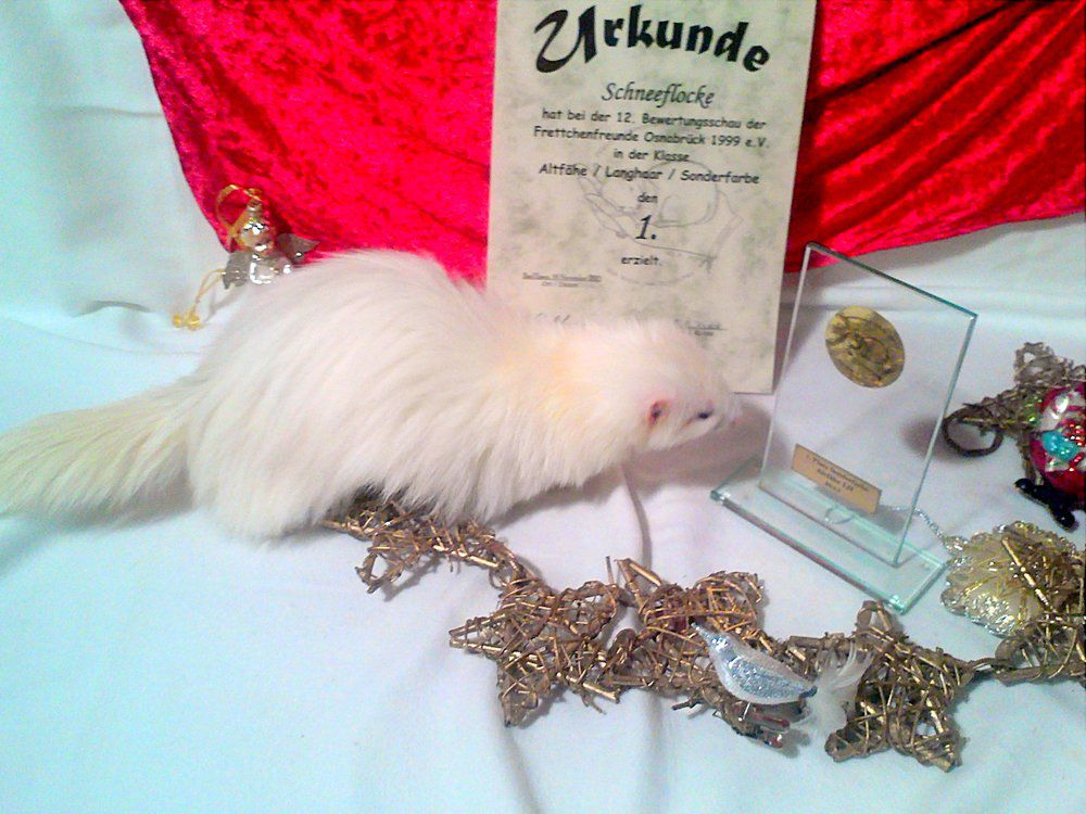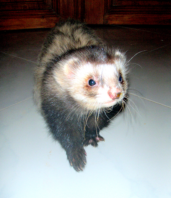 Kali ist ein richtiges Sportfrettchen und klettert sehr gern auf den Katzenbaum und durch die Röhren auf und ab. Ihr Körper ist total hart und muskulös. Sie hat ein sehr zutrauliches Wesen, ist aber nicht das typische Schmusefrettchen. Es ist zu beobachten, wie von Jahr zu Jahr heller wird.